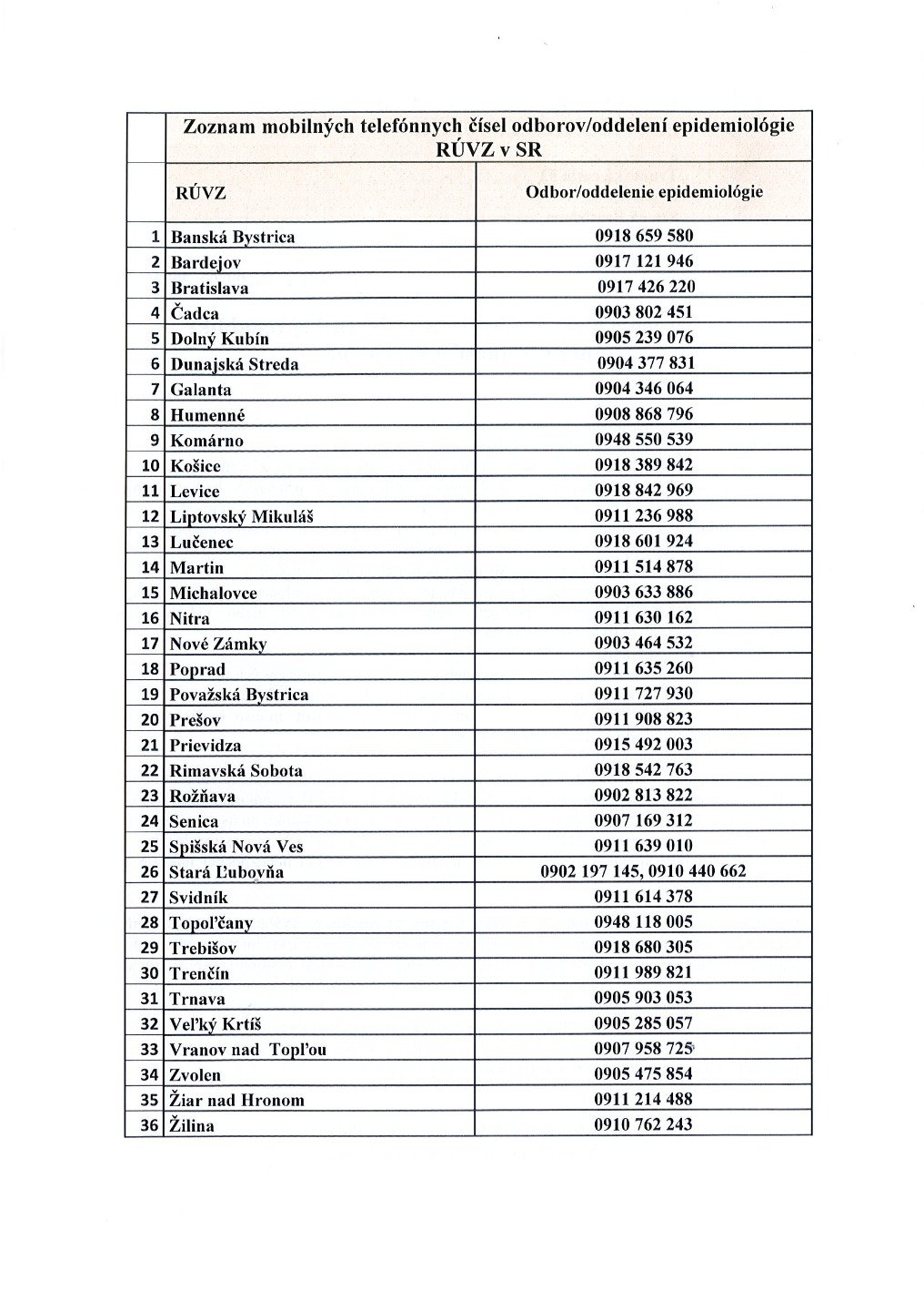 RÚVZ Trenčín - Verejná vyhláška - COVID19