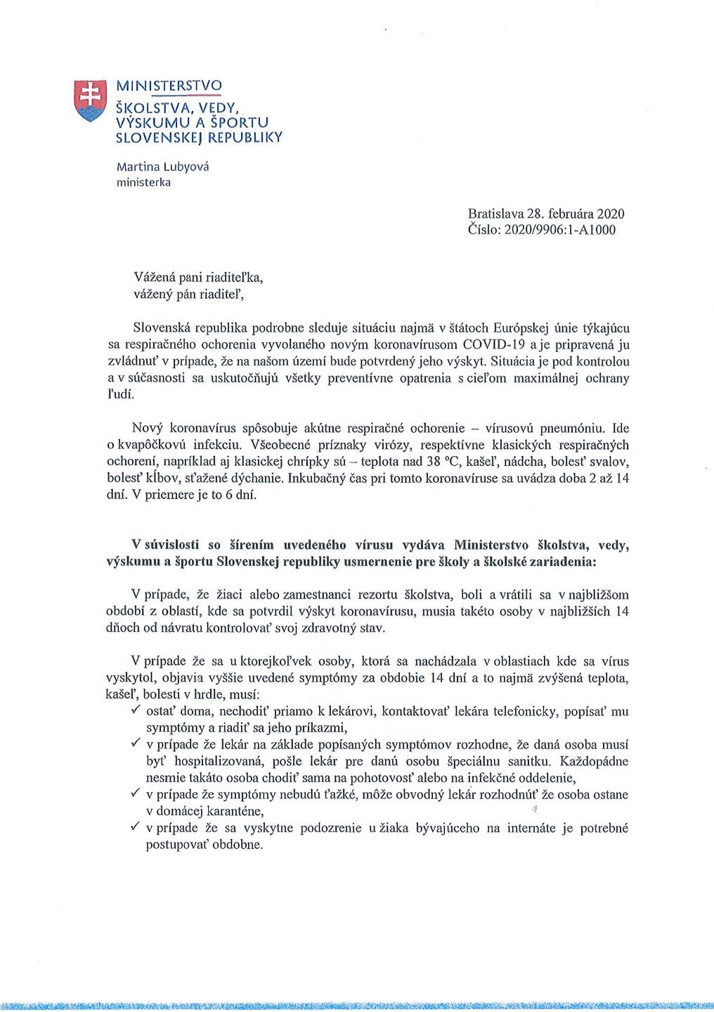 Usmernenie MŠVVŠ SR č. 3 k šíreniu koronavírusu 1